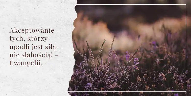 Akceptowanie tych, którzy upadli jest siłą – nie słabością! – Ewangelii. Istnieje ogromna różnica pomiędzy chłodem zbuntowanego serca a wołaniem z głębi zbolałej duszy: „Boże, ratuj mnie od siebie samego”. Jeden przebłysk Bożej łaski sprowadza nas wszystkich na kolana; wtedy wyznajemy i porzucamy grzech „i zmuszamy wszelką myśl do poddania się w posłuszeństwo Chrystusowi”. (2 Kor 10,5)