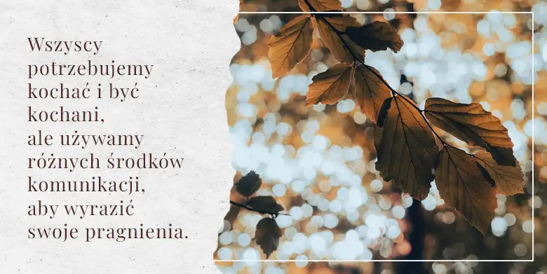 Księga Przysłów 21,11Zarówno w życiu osobistym, jak i zawodowym nauka dobrej komunikacji jest niezbędna do osiągnięcia sukcesu i szczęścia w relacjach. Oprócz przekazywania faktów, komunikacja powinna umożliwiać zrozumienie serca i umysłu drugiej osoby. A dobra komunikacja wymaga tłumaczenia. Tak naprawdę uczysz się języka drugiej osoby. Wszyscy używamy tych samych słów, ale jeśli chodzi o miłość, mamy swój, unikalny język. To, co masz na myśli, mówiąc: „Potrzebuję kogoś, kto będzie ze mną”, może nie być tym, co druga osoba ma na myśli, mówiąc: „Będę tu dla ciebie”.